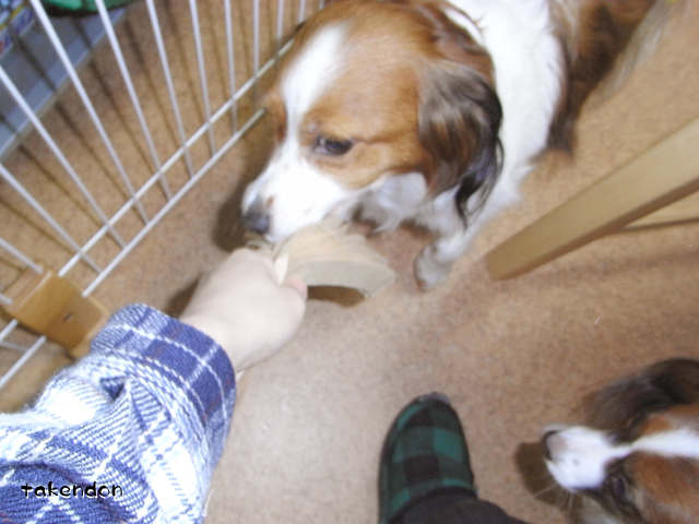 譲る・・・?リンが?ないない。ボールとか無遠慮に突っ込んできますよ。^^;このときは本当に何だか解ってなかったみたいです。しかも最初は興味なかった。でもジョバンニが楽しそうにウガウガ言ってるから、何か面白そう~と思って寄ってきた感じです。