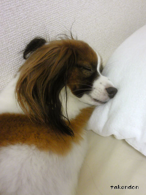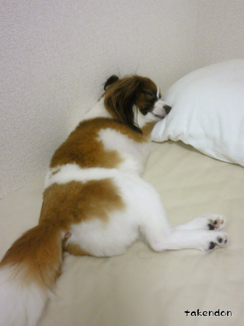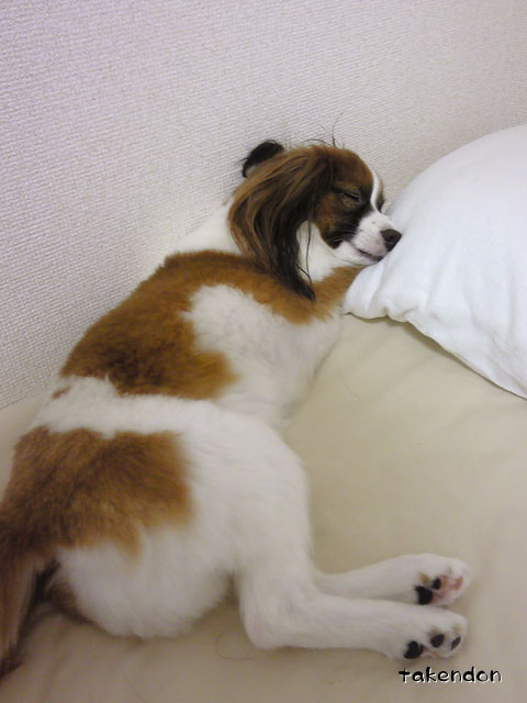 まめちょは5ヶ月でやってきたので、仔犬の頃を知らんのだ。それ以来まる4年、そんなイカの一夜干しみたいな寝方は見た事がないw 股関節が柔らかいきな子ですら、ヘソ天でそんな股関節してないぞ。見たい。そんで撫でてさらに伸ばしたい。