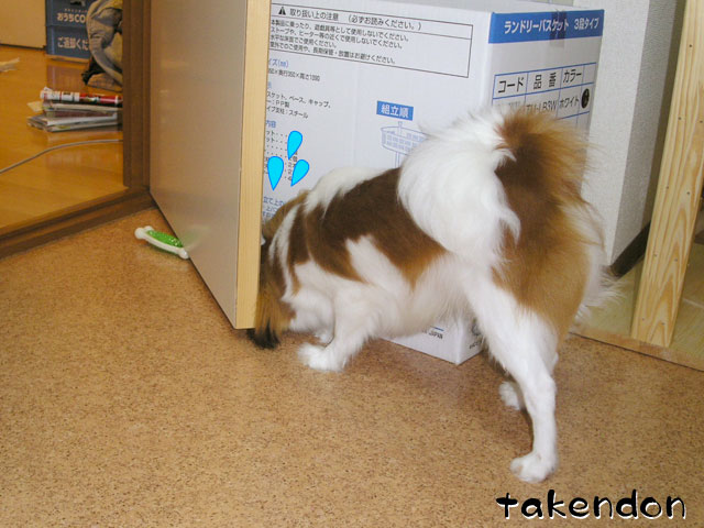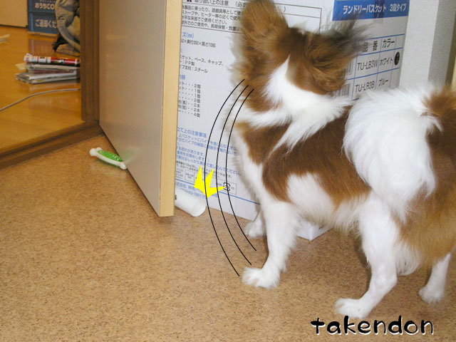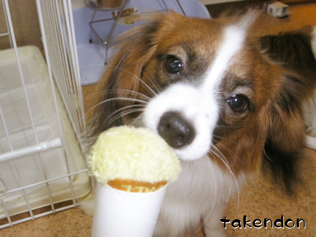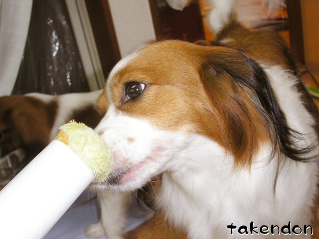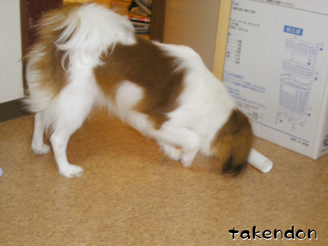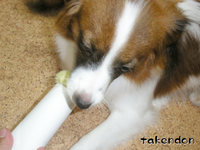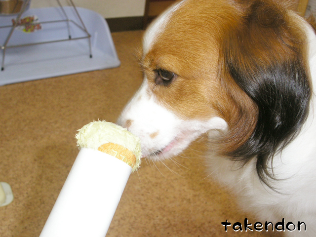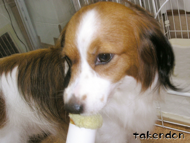 うちは、ソフィーが異常にペーパー芯に執着するんですわ。でもうっかり与えるとガジガジ齧って、齧るだけならまだしも、食ってしまう!!・・・だから与えるのは禁止なんですぅ。(T-T)