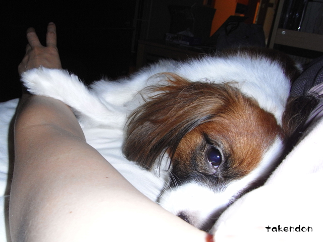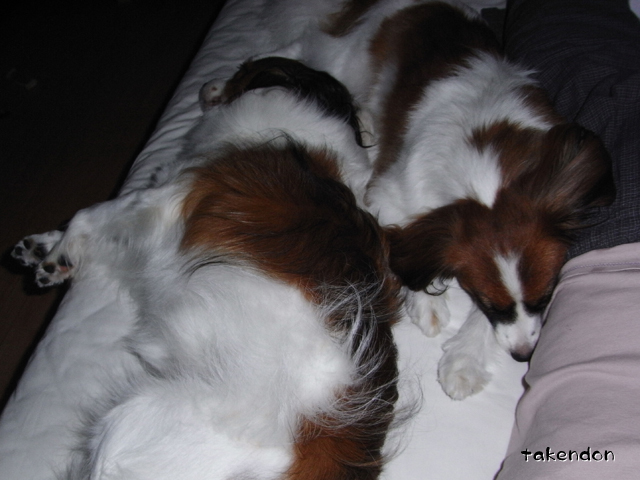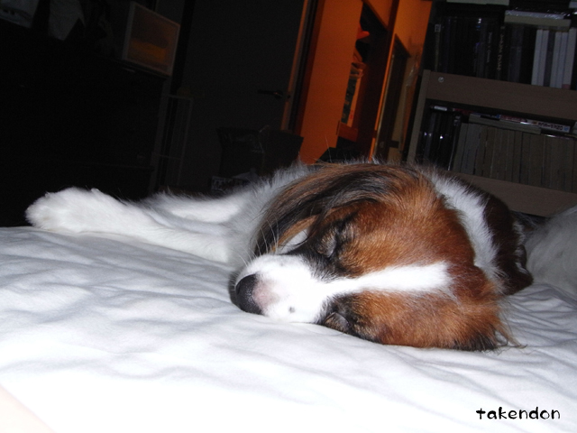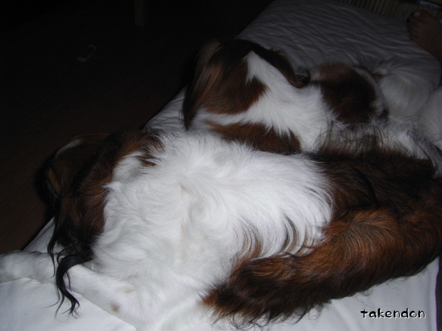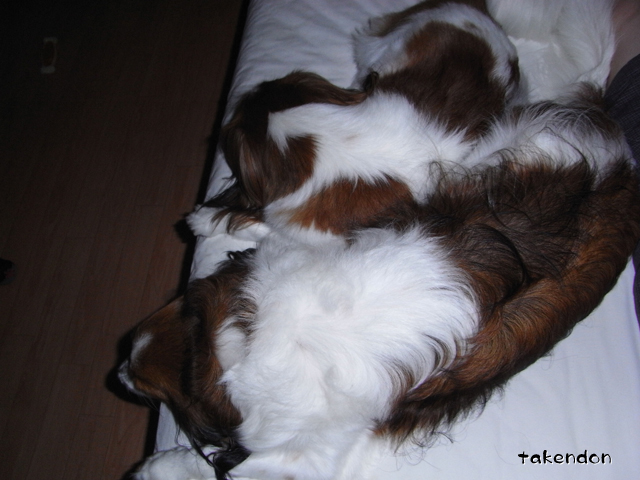 私も昔外で犬を飼っていた子供の頃は一緒に寝たいなぁ~と思ってましたよ。ほら、ファンタジーとかで犬っぽいキャラと主人公が冒険したり、旅の途中、野宿して一緒に寝たり・・みたいなイメージで。え~・・実際一緒に寝るとですねぇ、幸せですけどそれなりに狭いですね。そして意外と朝までは一緒に居てくれないですよ。(特にジョバンニさんは。)一人の方がのびのび寝られるからなのか、暫くすると自宅(バリケン)に帰っちゃいます。コイケルさんは寝てるところを邪魔されるのがお嫌いなタイプが割りと居るようですけど、やっぱりその辺は甘ったれでも「それはそれ、これはこれ」っていうコイケルの気分屋さんな部分なんでしょうかね?あ、ちなみにチィ姉ちゃんの部屋は犬は立ち入り禁止です。夜は大体閉められてますが、開いてても中には主がいるので入りませんよ。^^;