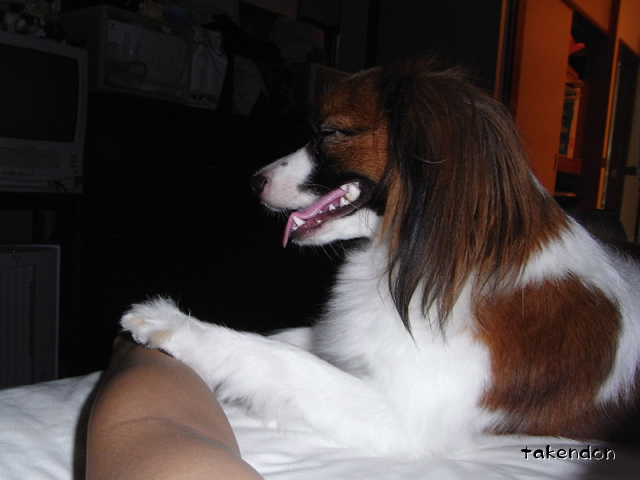 いや、なるなる。それなりますよ。ジョバンニと二人だった時で、まだバリケンが無かった頃なんか、絶対に朝起きたら尻でした。酷い時などは後ろ足で頬を蹴られた状態とか・・噂じゃ尻を向けてくるのはリラックスしてるって事とか聞きましたけど、起きた時、犬の尻を抱きしめてる自分・・あんまり嬉しくない。(でもコイケルの尻はモチッとボリュームがあって結構抱き心地が良くて好きです。^^)