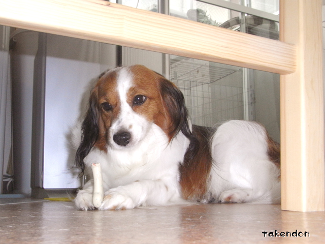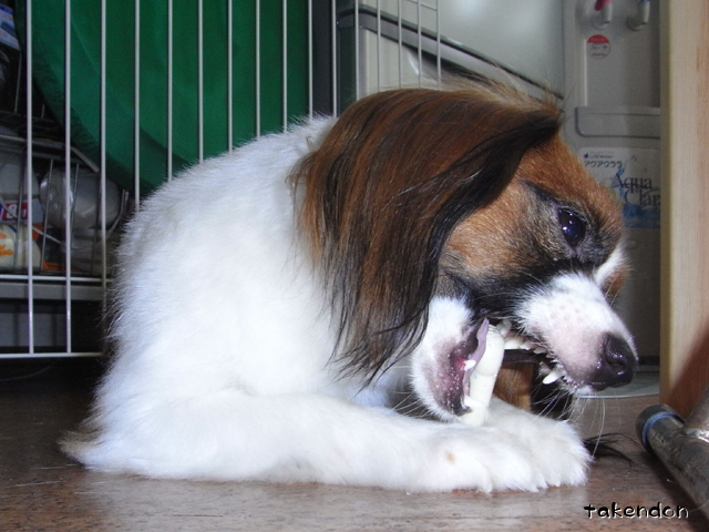 硬い分だけ小型犬には齧り取るのが一苦労。