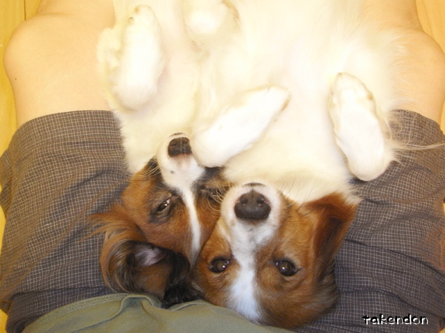 そう・・ね。困った顔も犬の萌要素なんですよね。猫は困ると言うか、迷惑って顔しますよね。それはそれで好きなんだけど。デコにチュウとかしちゃうけど。(そんで、ム~ッって鳴いたらなお萌える。)猫は猫でお互いの空気感が似てて楽なんですけどね。リンはこの後爆睡です。安心感あるんじゃないですかね?愛玩犬って抱っことか体温で温まる事すると、お寝むスウィッチ入りませんか?リンだけかな?