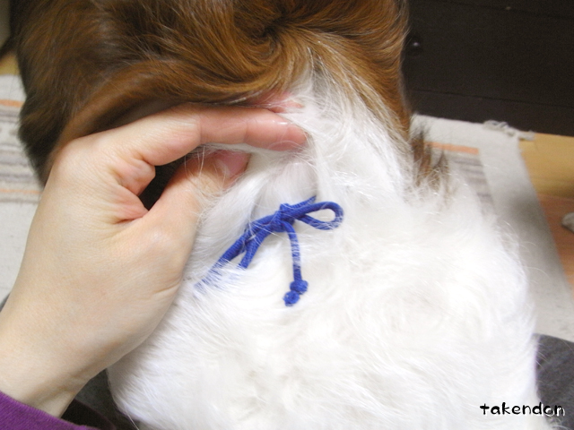 そう。長毛だからあの手の細いのは埋もれちゃいますよね。難易度っていうかつける意味あんのかなぁとか思いました。バンダナとだとあの紐の方が価格安いのかしら?同じくらいならバンダナの方が犬種選ばずで扱いやすそうだけどなぁ。・・とかね。