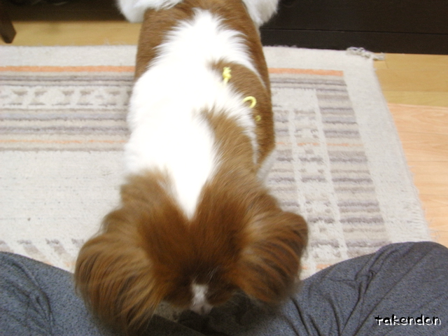 いやぁ・・・解んない。見えないお洒落は自己満足が伴ってこそじゃないかなぁとも思うけど。この場合犬は全く関心が無いので、得るべきは飼い主の満足感なのかもしれないが、本当に気付かないくらい毛に埋もれてて何のアピール力も無いものなので・・・最初発見した時は、何のためについてるのかすら不明だった。(いや、お洒落なんだろうけどトリマーさん満足のお洒落って・・それは何なのだ?)足・・・出さないから皆白いでしょうよ?それとも何かね?チミは一年中サンダルだとでも言うのかね?(あ・・パン一だっけか?)