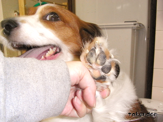 うちはまぁ、床で滑るのもあるし、お散歩の後の汚れの除去が大変だから、はさみでジョキジョキ切っちゃいます。メイシェはともかく、大げさフィは殺されそうな嫌がり方をするので大仕事なんですけど。。。